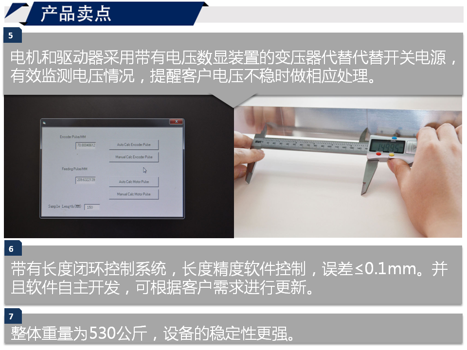 6.帶有長(zhǎng)度閉環(huán)控制系統(tǒng),長(zhǎng)度精度軟件控制,誤差≤0.1mm。并且軟件自主開發(fā),可根據(jù)客戶需求進(jìn)行更新。
