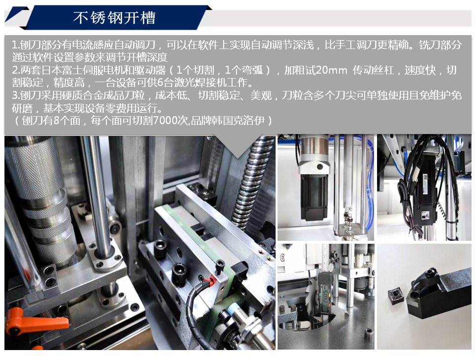 2.兩套日本富士伺服電機(jī)和驅(qū)動(dòng)器(1個(gè)切割,1個(gè)彎?。?,加粗試20mm 傳動(dòng)絲杠,速度快,切割穩(wěn)定,精度高,一臺(tái)設(shè)備可供6臺(tái)激光焊接機(jī)工作。